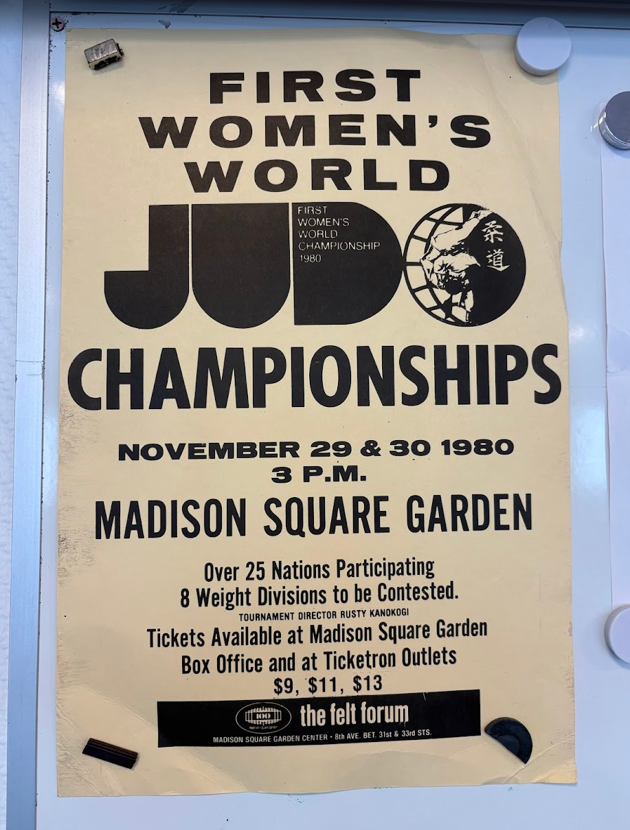 Jag hade sett affischen tidigare och trodde att det var en utskriven kopia. Jag hade fel, den är ett original vilket det gulnade pappret vittnar om. En bit ner på affischen, skrivet i mycket liten text, kan man läsa att turneringen organiseras av "Rusty Kanokogi".